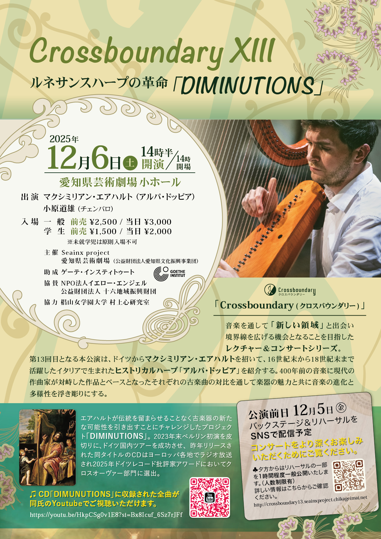 クロスバウンダリー13   〜 ルネサンスハープの革命 「DIMINUTIONS」